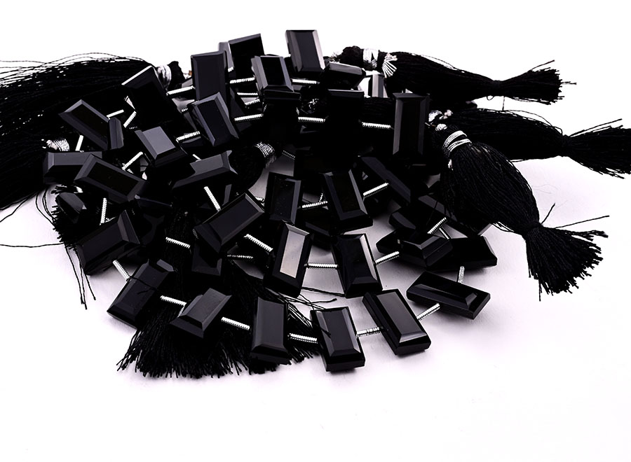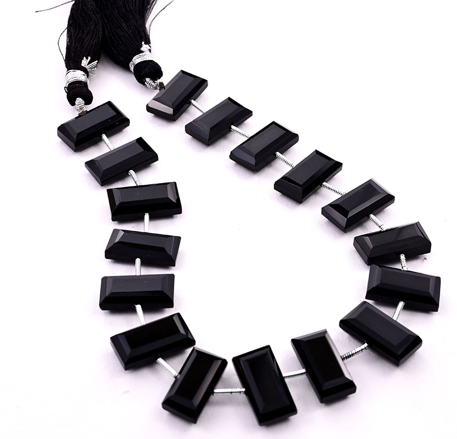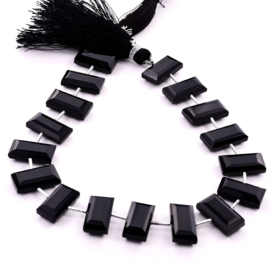 Black Onyx 8x16mm Faceted Rectangle Center Drill