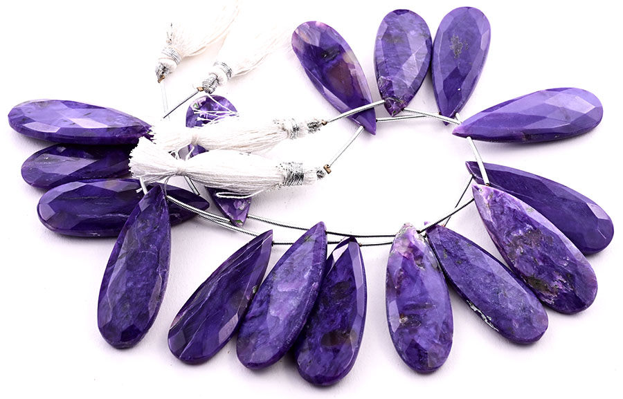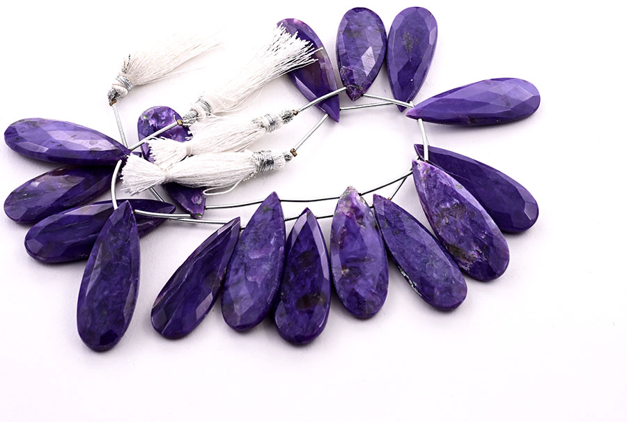 Charoite gemstone is composed of various mineral ingredients like calcium, potassium, and silicon. Charoite stone is translucent to opaque and sometimes called “Stone of transformation” as it helps in changing from negativity to positivity, fragility to strength, and sickness to health. Charoite is usually cut and polished into pears, ovals, rectangles, also into odd-shapes to show off dazzling colors and interesting patterns, hence used for jewelry making like pendants, earrings, necklaces, chains, etc.