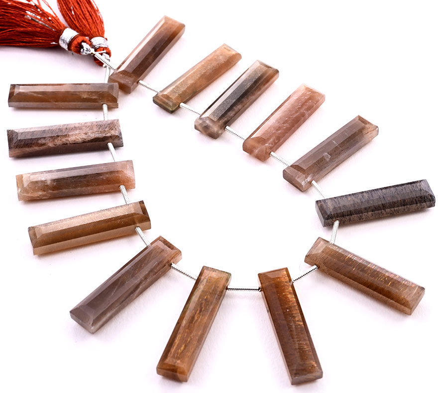 Golden Shine Moonstone 7x28mm Faceted Rectangle