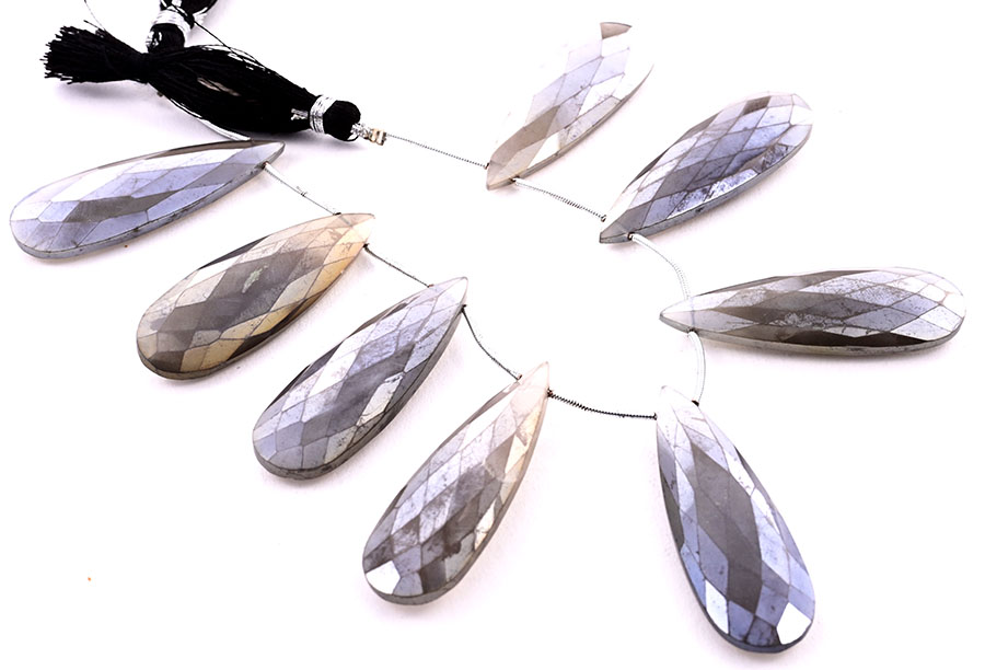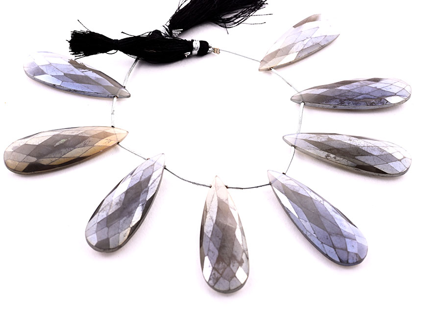 Gray Moonstone Coated 15x45mm Faceted Pear