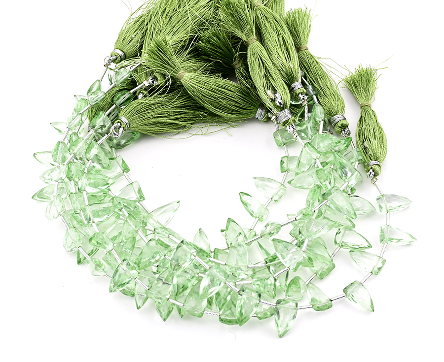 Green Amethyst is also known as Prasiolite which is a heat-treated form of natural amethyst. This gemstone is a pale green form of quartz. Amethyst turns green due to addition of radiation, else amethyst usually turns orange or yellow, producing citrine. Green Amethyst is a popular gemstone in jewelry making like chains, bracelets, earrings, pendants, etc.