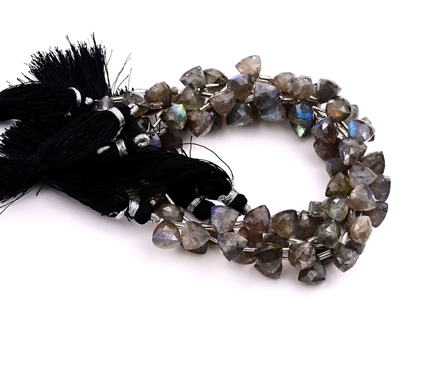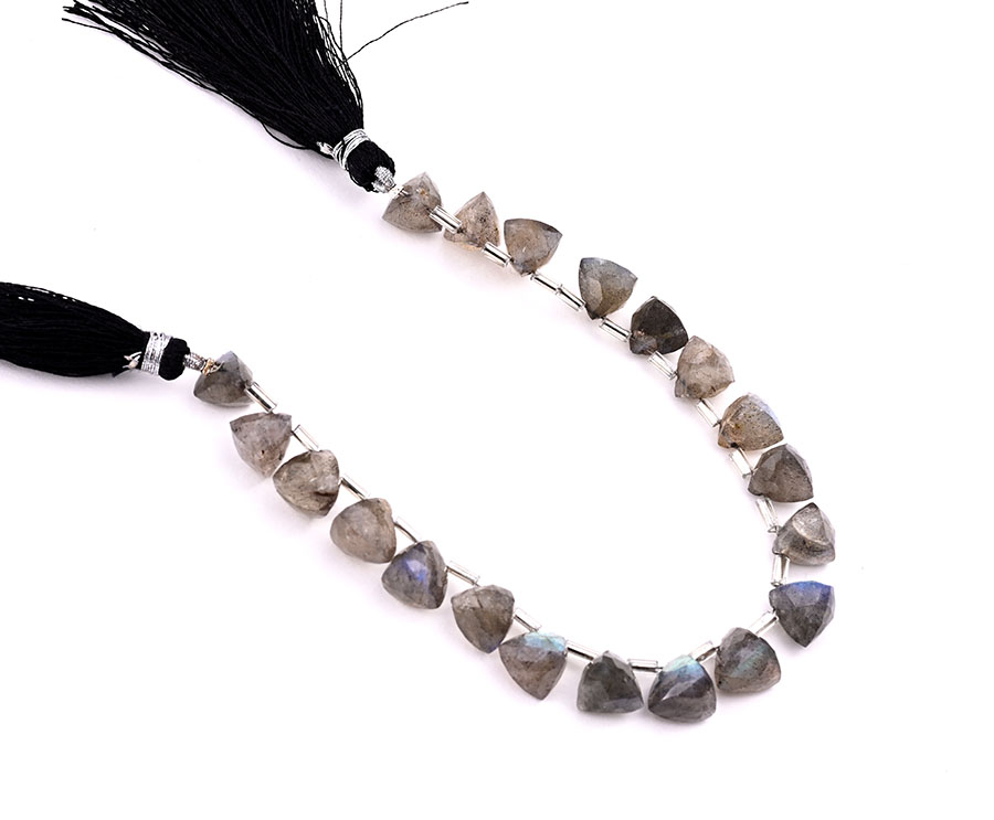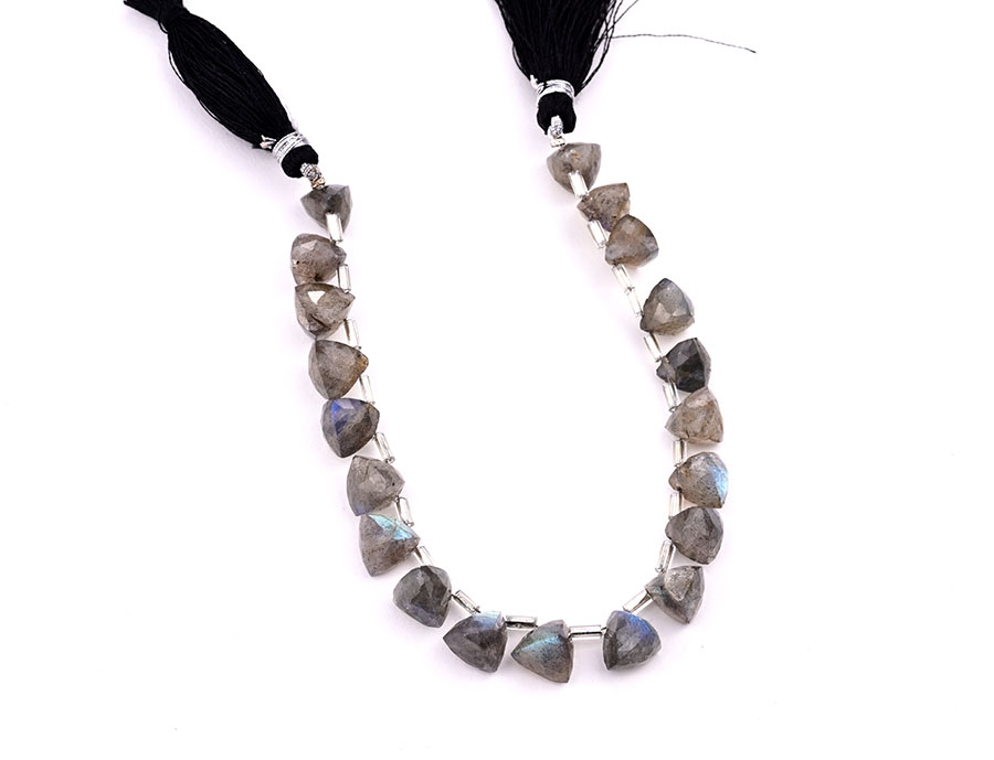 Labradorite is related to the feldspar group with calcium & sodium components. The stone is often used to create earrings, attractive pendants, and beaded jewelry. Labradorite gemstone is a durable material with a hardness of 6-6.5 (on Mohs scale), but softer than quartz. Color of Labradorite is gray/blue with colorful iridescence.