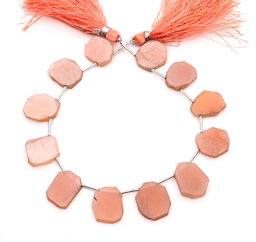 Light Peach Moonstone Coated 13-16mm Organic Cut Slice