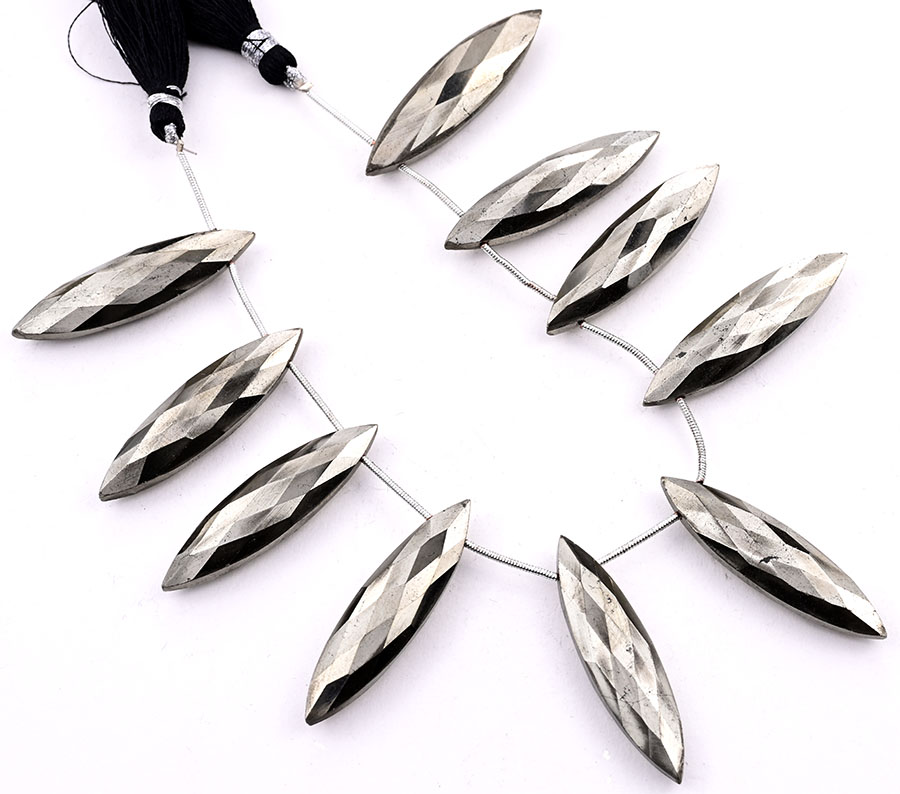 Pyrite 11x40mm Faceted Marquise