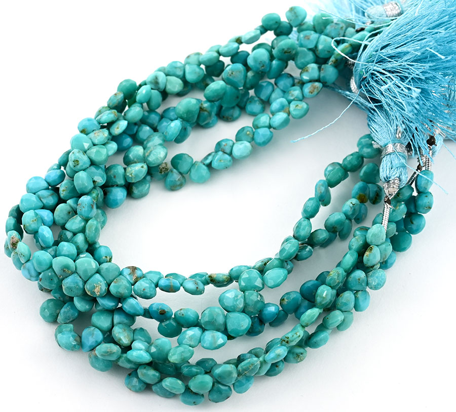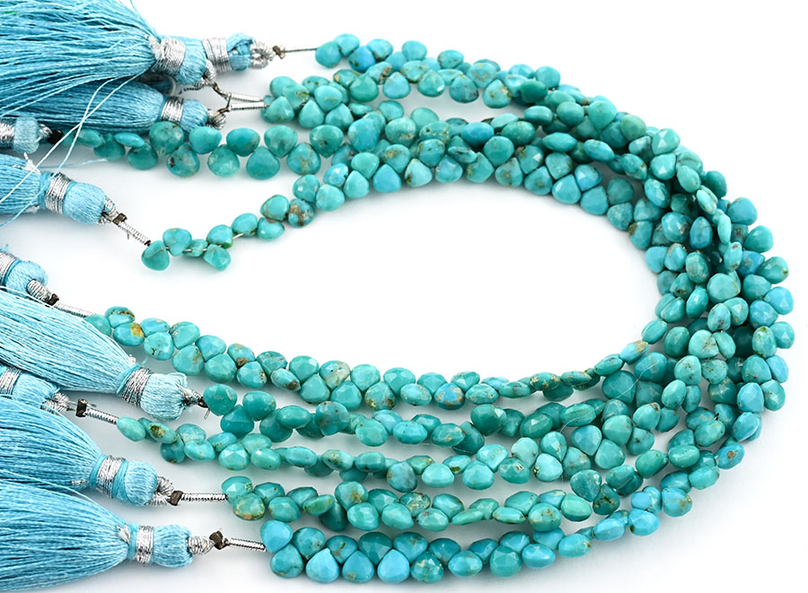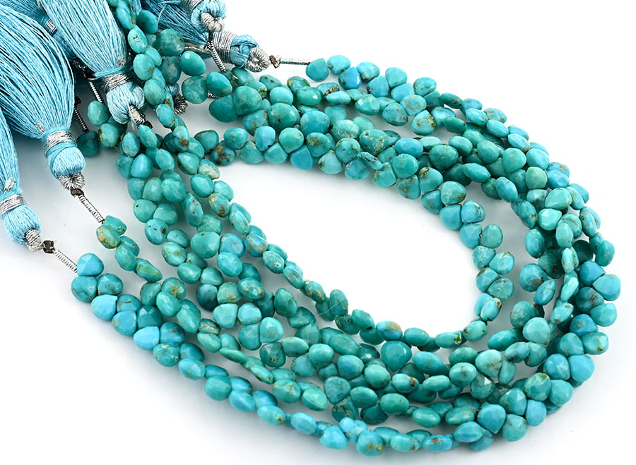 Turquoise is a porous material hence sometimes impregnated with plastic or wax, polymers for enhancing the color & harden its surface. It is translucent to opaque phosphate which contains copper, and sometimes mixed with malachite or chrysocolla which causes a blue and green appearance. Turquoise is most popular in ethnic jewelry and can be used in earrings, necklace, pendants, bracelets, rings, etc. The stone is believed to offer protection against harm while travelling and helpful for careers.